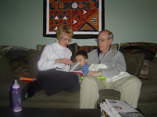 Grandma and Grandpa reading with Liam.